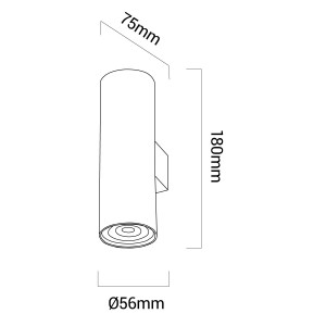 Wandleuchte mit modernem und elegantem Design. Diese Wandleuchte hat eine zylindrische Form und ist aus hochwertigem Aluminium gefertigt, langlebig und leicht zu reinigen. Es eignet sich nur für die Wandmontage und ist als IP20-Produkt nur für den Innenbereich geeignet. Sie benötigt zwei GU10-Sockel-Glühbirnen mit maximal 50 W (nicht im Lieferumfang enthalten). Sie können sie in unserem Beleuchtungsshop kaufen.