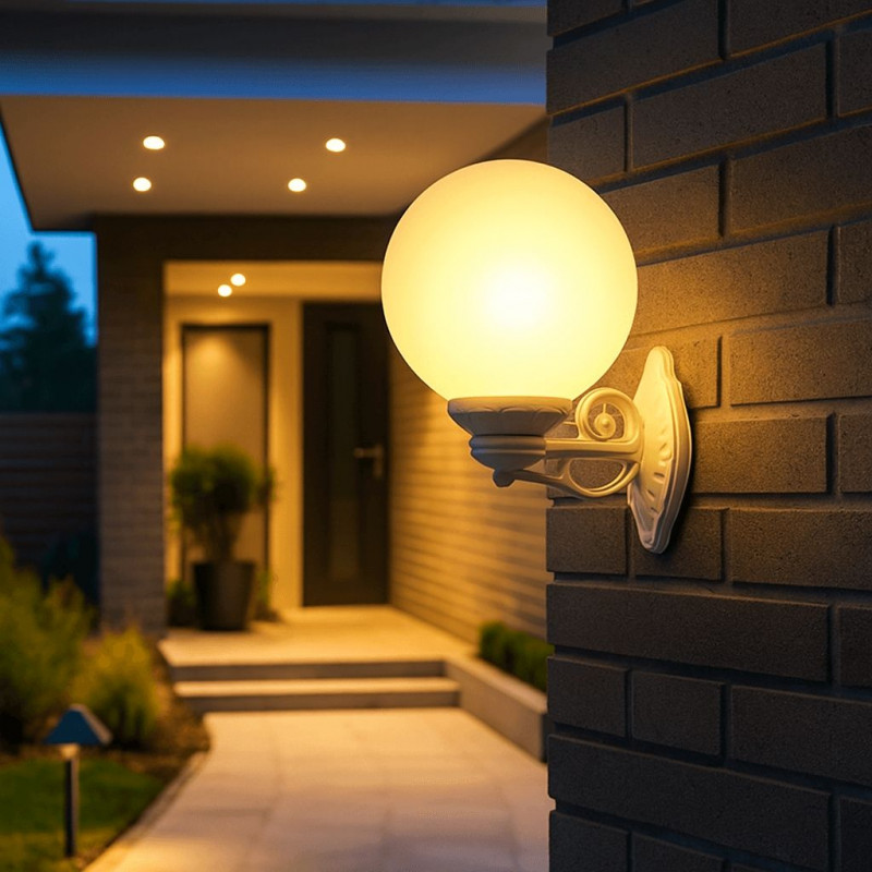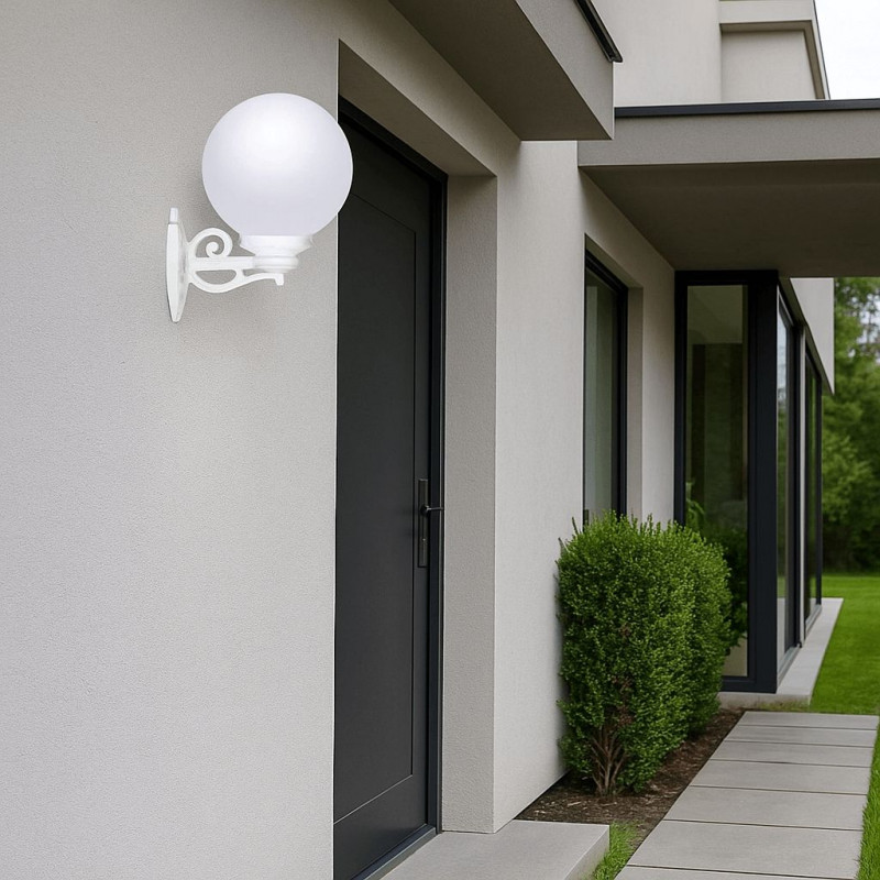 Die Wandleuchte BISSO G250 aus der Serie "Globe" zeichnet sich durch ihr klassisches Design und ihre robuste Konstruktion aus und ist ideal, um jeden Außenbereich zu verschönern.