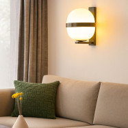 Die Wandleuchte "BLOOM 2" verbindet die Schlichtheit des modernen Designs mit der Wärme des diffusen Lichts, das von ihrem Opalglasschirm ausgeht.
