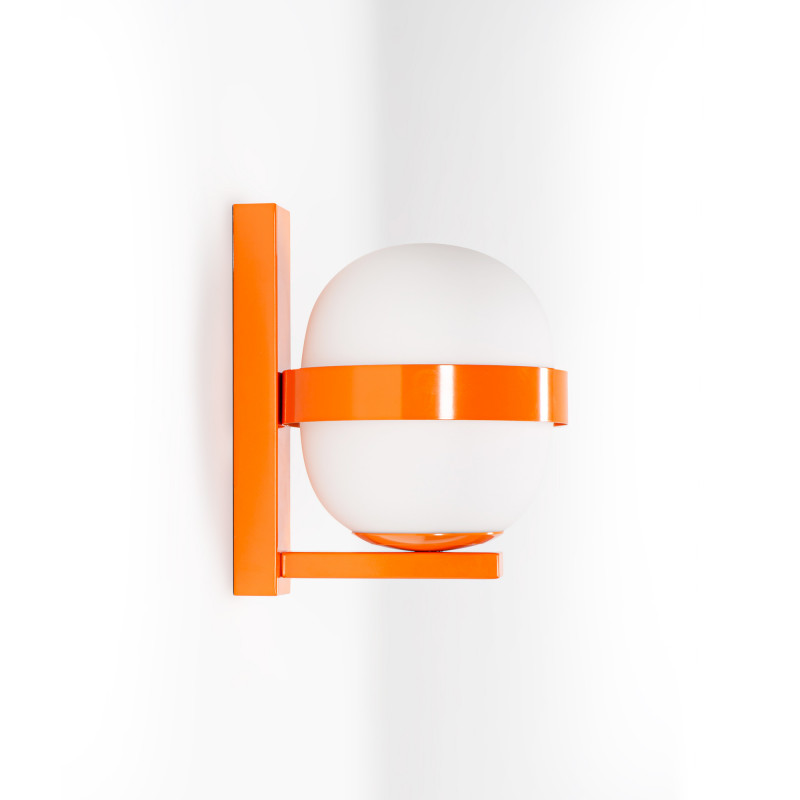 Die Wandleuchte "BLOOM" verbindet die Schlichtheit des zeitgenössischen Designs mit der Wärme des diffusen Lichts, das von ihrem Opalglasschirm ausgeht.