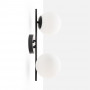 Doppelte" Wandleuchte mit einem eleganten Design, das aus zwei Opalglaskugeln und einer Aluminiumstruktur besteht.