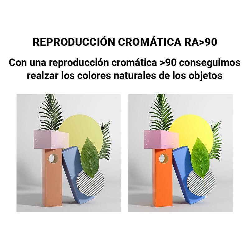 Die rotierenden Köpfe der LED-Scheinwerfer sind mit einem CREE COB LED-Chip ausgestattet, der in jeden Kopf integriert ist. Bei einem Stromverbrauch von nur 18 W bietet sie 1440 Lumen in warmem 2700 K-Licht mit einem Farbwiedergabeindex von über 90. Das entspricht zwei 100 W-Halogenlampen pro Stück. Sein modernes Design in schwarzem und weißem Aluminium erlaubt es Ihnen, ihn mit jeder Art von Dekoration zu kombinieren.