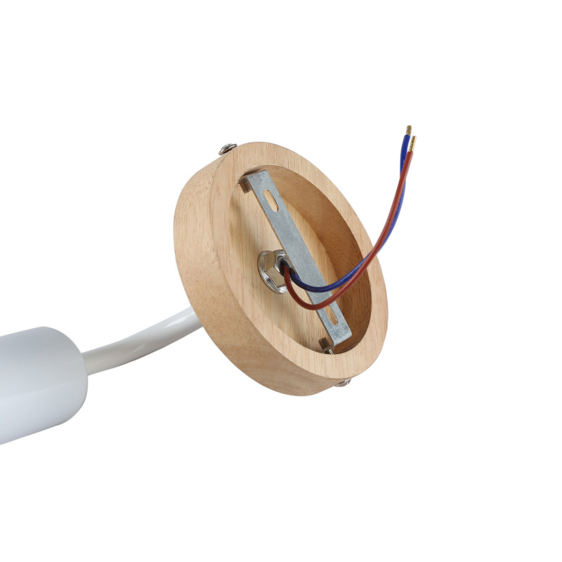 Der Baldachin aus Holz verleiht Wärme und Charakter und kontrastiert perfekt mit dem Metallarm, der in Weiß oder Schwarz erhältlich ist.