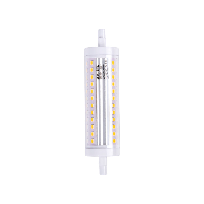 Hocheffiziente, hochwertige und dimmbare 15W R7S LED-Lampe. Ideal für den Ersatz von 118 mm R7S-Halogenlampen, mit Energieeinsparungen von über 85 %.