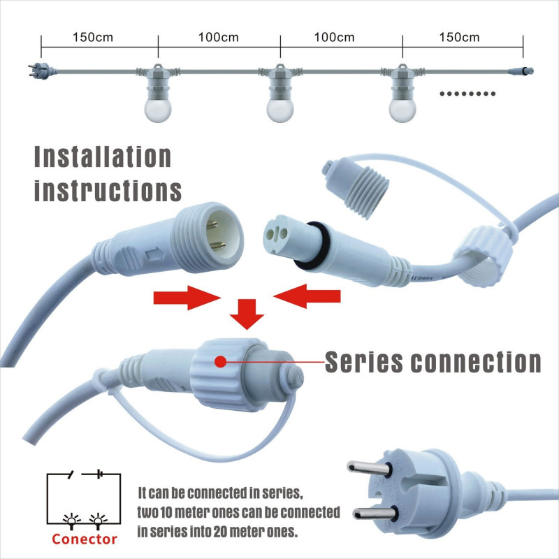 Dieses Lichterketten-Set für den Außenbereich + 10 LED-Lampen stellt eine flexible Lösung für die Außendekoration dar.