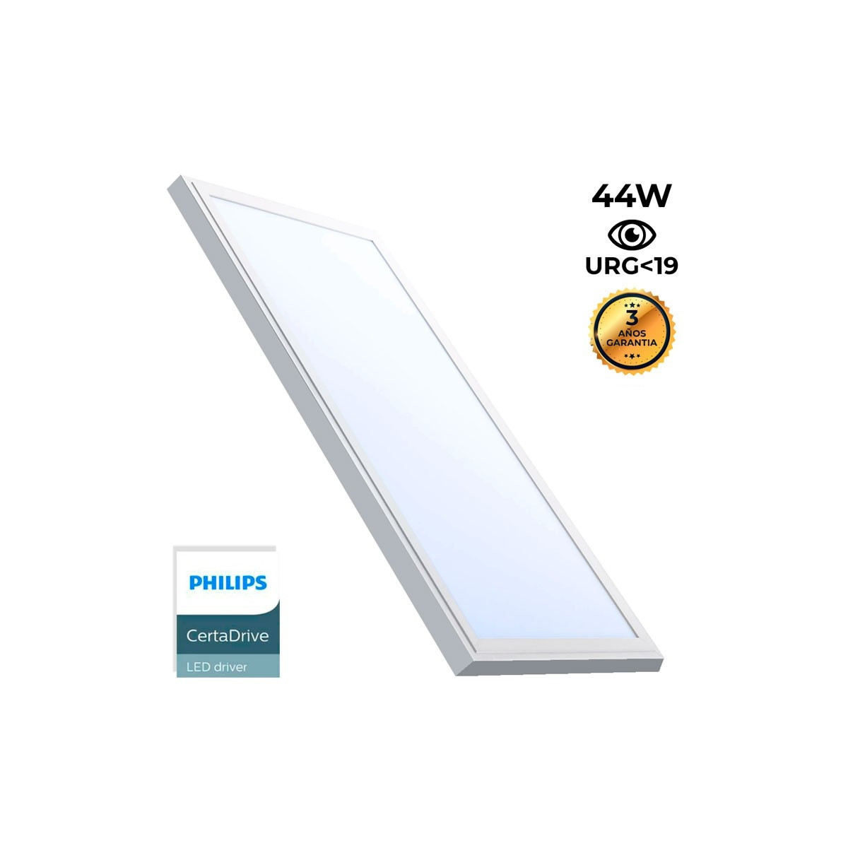 Es handelt sich um ein Produkt mit hoher Leuchtkraft, das ein gleichmäßiges Licht in einem 120° Winkel ausstrahlt. Das Panel verfügt über eine Leistung von 44W und einen hohen Farbwiedergabeindex (CRI>80), der eine sehr naturgetreue Farbwiedergabe ermöglicht, ähnlich wie bei natürlichem Licht.