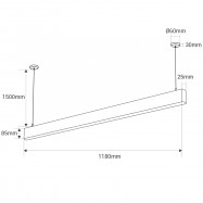 Lineare LED CCT-Leuchte - Abgependelt - Einstellbare Wattleistung 20W/30W/40W - 120cm - UGR 19