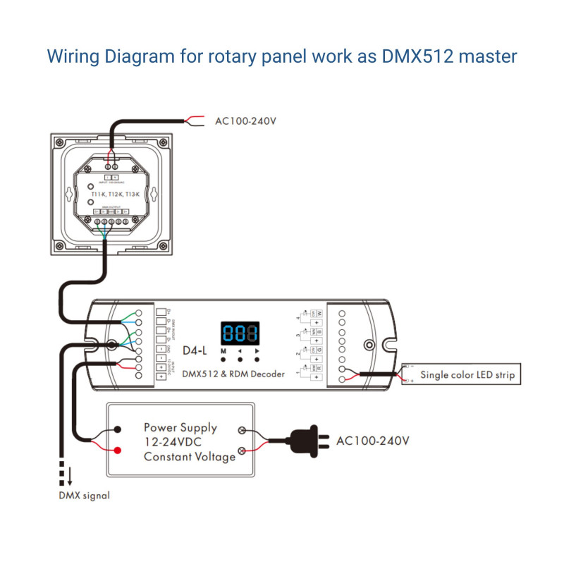 Sie entspricht dem DMX512-Standard und ist mit jedem DMX-Decoder kompatibel, was eine einfache Integration in bestehende Beleuchtungssysteme gewährleistet.
