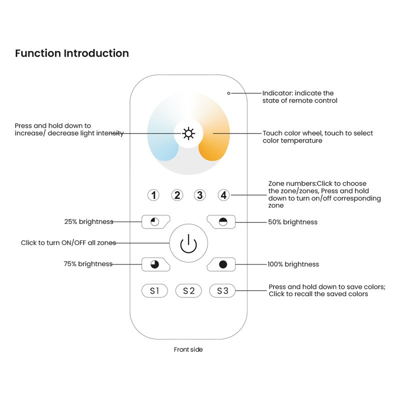 Die CCT LED-Fernbedienung kann die Intensität jedes einzelnen CCT Farbtemperaturkanals steuern.