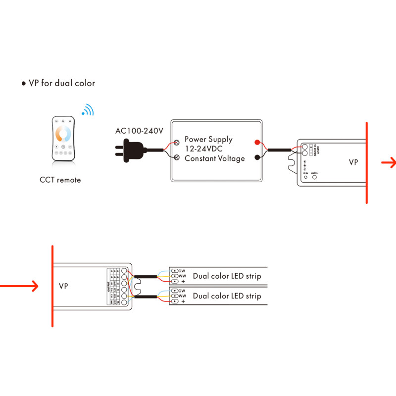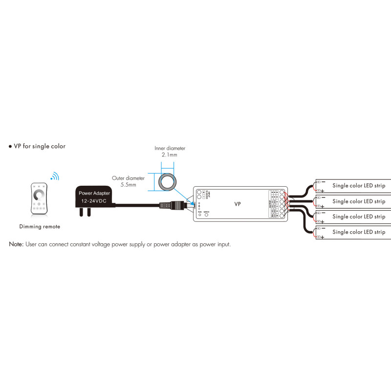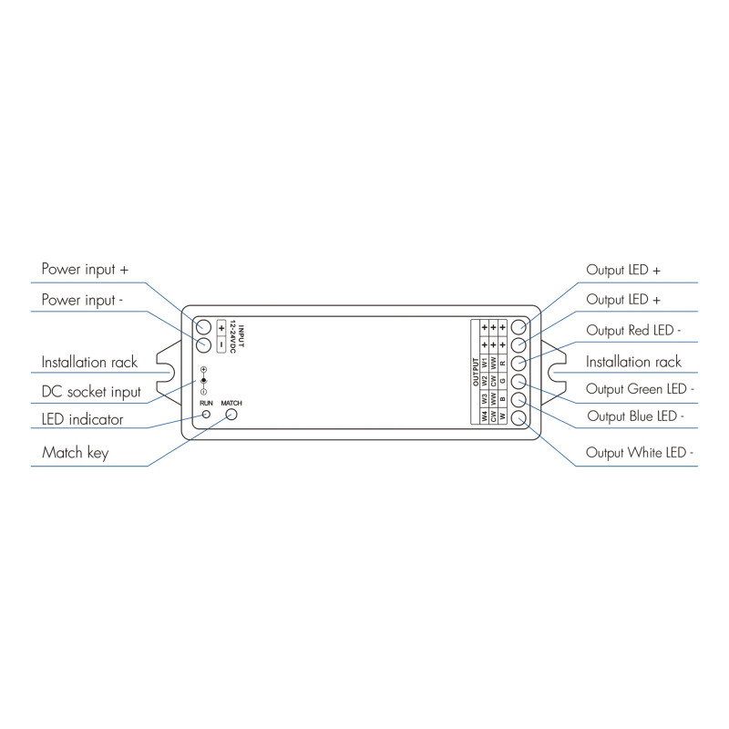 - Kompatibilität: Kompatibel mit Skydance Einfarben-, CCT-, RGB- und RGBW RF 2.4G-Fernbedienungen.