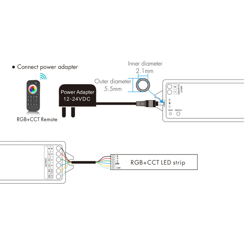 - Kompatibilität: Kompatibel mit 12-24V RGB + CCT LED-Streifen.