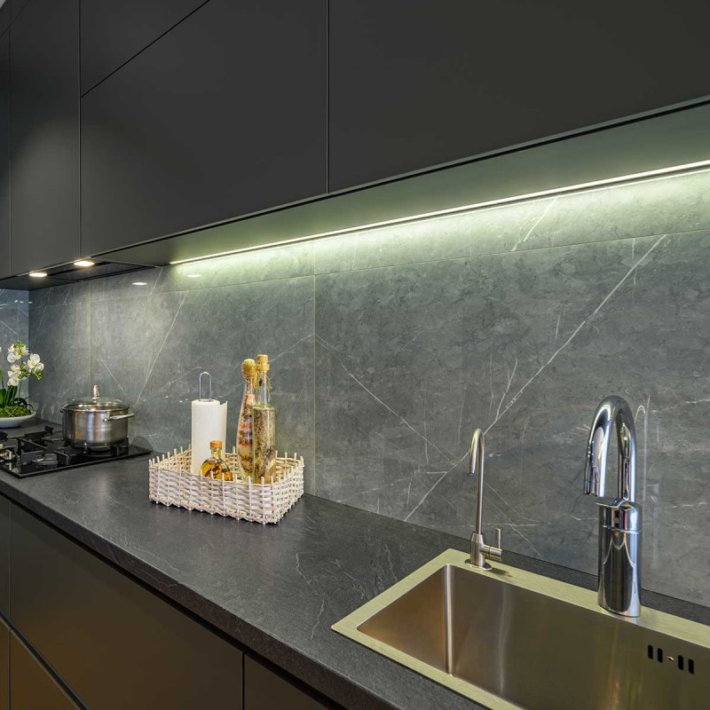 Das Aluprofil ermöglicht viele Anwendungen und kann überall in Innenräumen montiert werden. Es eignet sich für die Schaffung von Lichtlinien, die Beleuchtung von Vitrinen und Regalen, die Beleuchtung von Küchenschränken, ästhetische Lösungen in Badezimmern, Handläufen, Möbelbeleuchtungen usw.