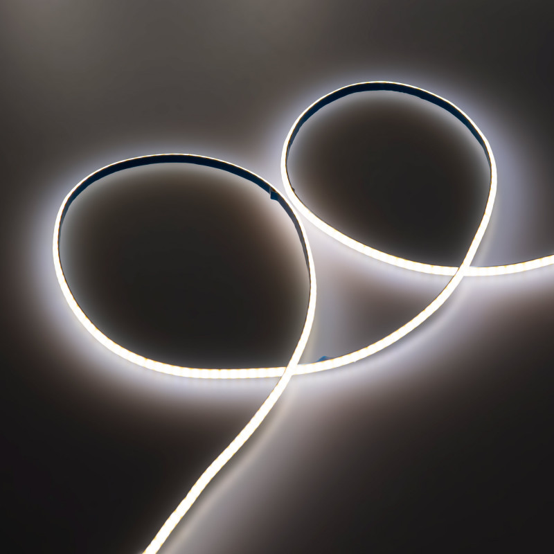 Dieser LED-Streifen verfügt über die COB-Technologie, die es ihm ermöglicht, ein kontinuierliches Licht ohne sichtbare Punkte auszustrahlen, was besonders empfehlenswert ist, wenn eine homogene Beleuchtung gewünscht wird, um mit reflektierenden Oberflächen zu arbeiten oder um transparente Diffusoren zu verwenden.
