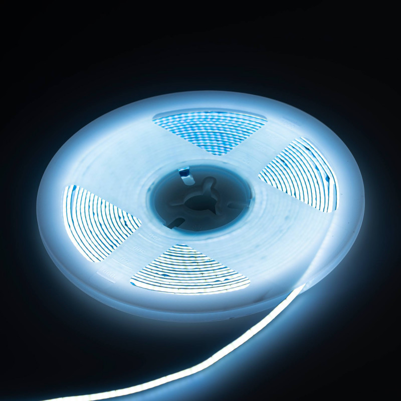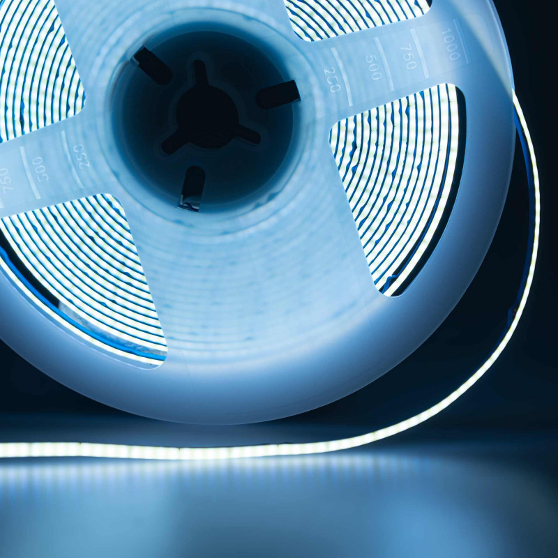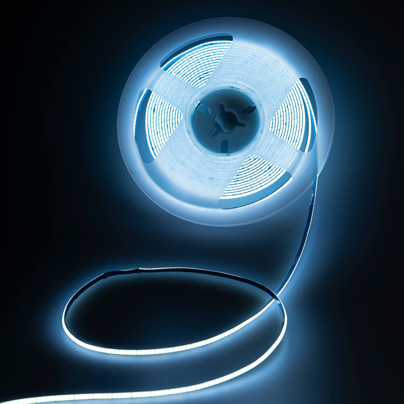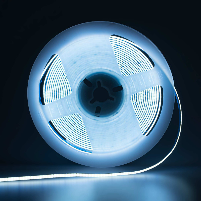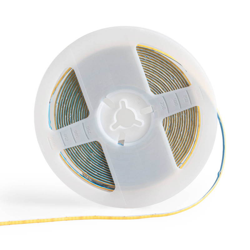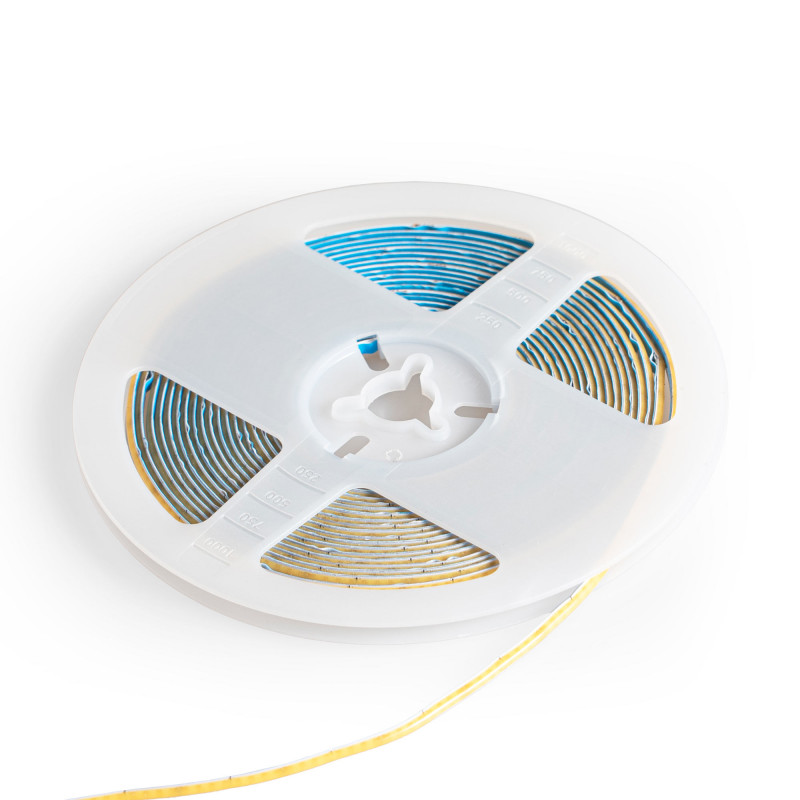 Dieser LED-Streifen verfügt über die COB-Technologie, die es ihm ermöglicht, ein kontinuierliches Licht ohne sichtbare Punkte auszustrahlen, was besonders empfehlenswert ist, wenn eine homogene Beleuchtung gewünscht wird, um mit reflektierenden Oberflächen zu arbeiten oder um transparente Diffusoren zu verwenden.