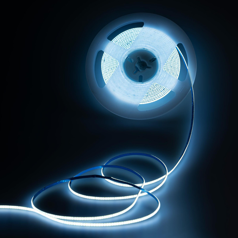 Der COB 24V DC LED-Streifen zeichnet sich durch seine helle und gleichmäßige Ausleuchtung aus, ohne Schatten oder sichtbare Lichtflecken, im Gegensatz zu herkömmlichen LED-Streifen.