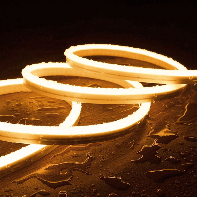 Seine bemerkenswerte Flexibilität zeigt sich vor allem darin, dass das Licht von der Oberseite aus abstrahlt und die gegenüberliegende Fläche mit Klammern an der Oberfläche befestigt ist, sodass ein seitliches Biegen möglich ist und sich der Schlauch an jedes Projekt anpasst.
