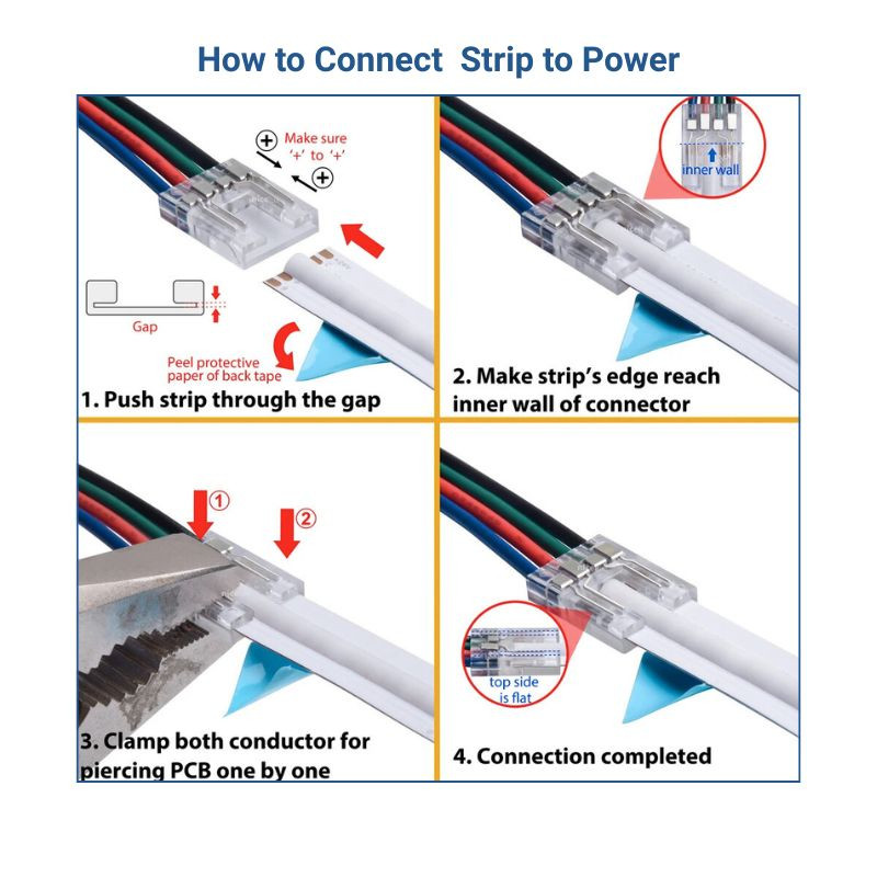 - Effiziente Verbindung: Ein Ende für den LED-Streifen, ein Ende für die Stromversorgung.