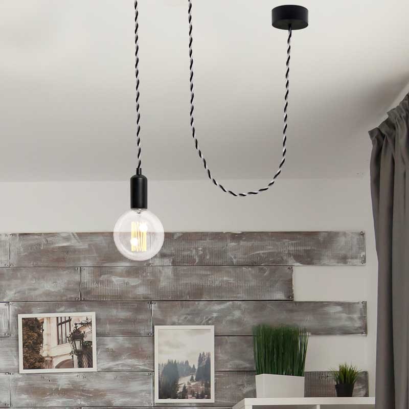 Geflochtenes Elektrokabel, mit dem Sie je nach Bedarf einfache oder komplexere Projekte realisieren können. Es ist ein idealer Kabeltyp für die Verwendung mit Vintage- oder Industrielampen, um nostalgische Atmosphären zu schaffen, die an die Vergangenheit erinnern und heute sehr in Mode sind.