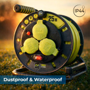 Kabeltrommel Pro-XT - 3 Abgänge - Hochsichtbares Kabel 3x1,5mm2 - 25m - IP44