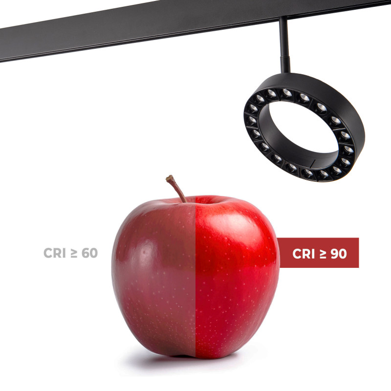 - Hervorragende Farbwiedergabe: Mit einem CRI von über 90 sorgt sie für lebendige, natürliche Farben, ideal für Räume, in denen Farbtreue wichtig ist, wie in Geschäften oder Ausstellungen.