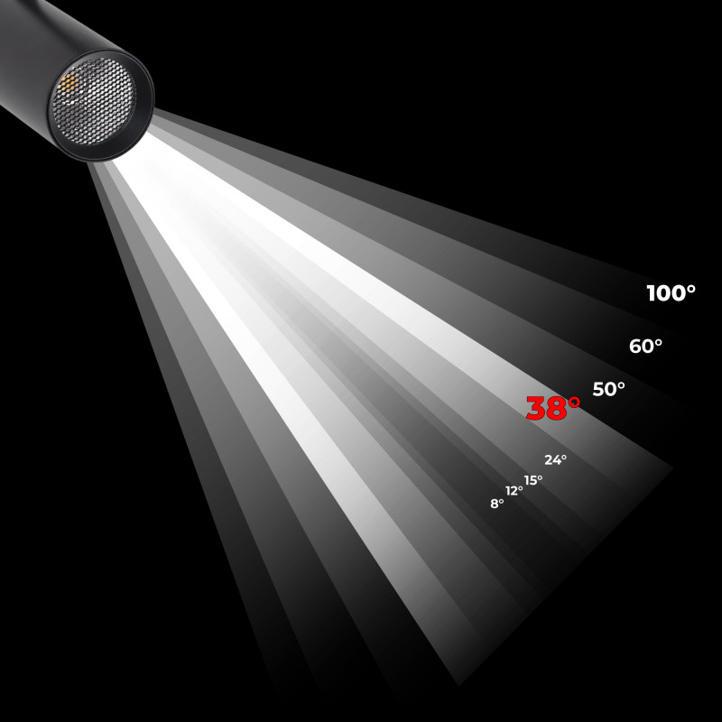 • Fokussierte Beleuchtung: 38° Öffnungswinkel, der das Licht auf bestimmte Bereiche konzentriert, ideal zur Hervorhebung von Produkten oder Objekten.