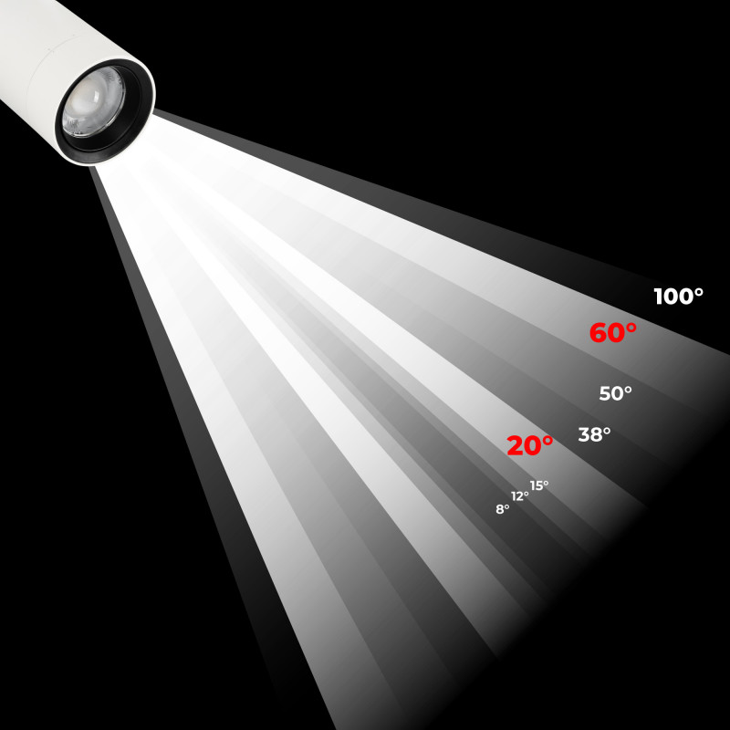 - Eingebauter Zoom: Einfaches Einstellen des Lichtwinkels zwischen 20º und 60º, um bestimmte Bereiche hervorzuheben oder mehr Raum abzudecken.