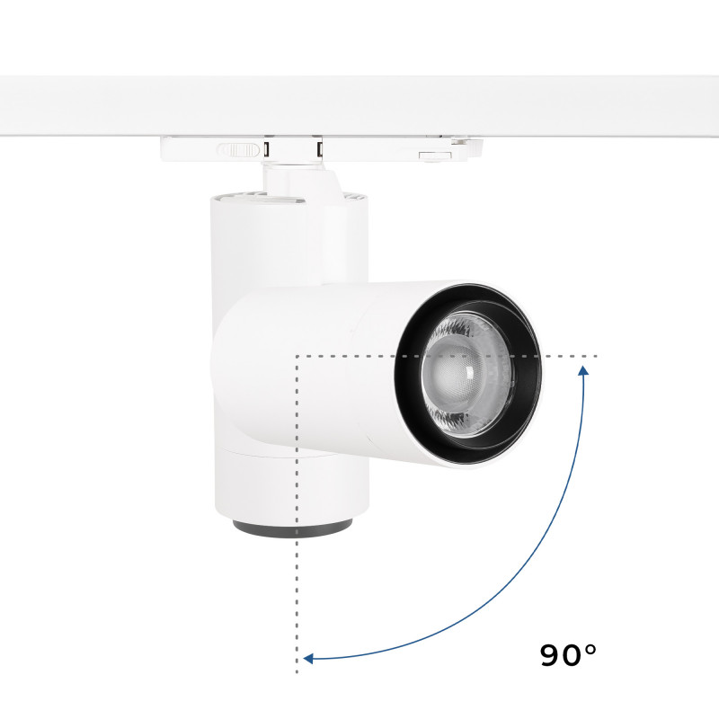 Dieser dreiphasige LED-Stromschienenstrahler vereint Leistung, Vielseitigkeit und außergewöhnliche Farbwiedergabe. Ideal für die Hervorhebung von Produkten oder Details in gewerblichen Räumen.
