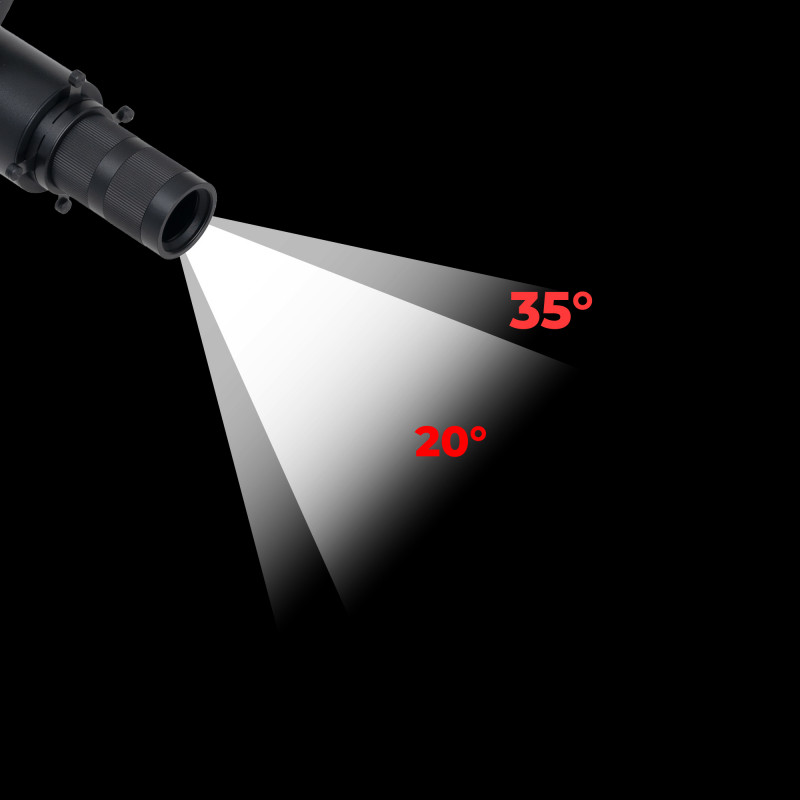 Ein einstellbarer Lichtöffnungswinkel zwischen 20° und 35° bietet zusätzliche Kontrolle über die Schärfe und den Fokus des Lichts. So wird sichergestellt, dass jedes Kunstwerk die richtige Aufmerksamkeit und Beleuchtung erhält, unabhängig von seiner Größe oder bestimmten Details.