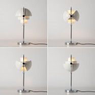 • Einzigartiges Design: Zwei halbkugelförmige Schirme, die von einem Metallring getragen werden, ermöglichen es, das Licht nach oben, unten oder in einem individuellen Winkel zu richten, wodurch ein dekorativer asymmetrischer Effekt entsteht.