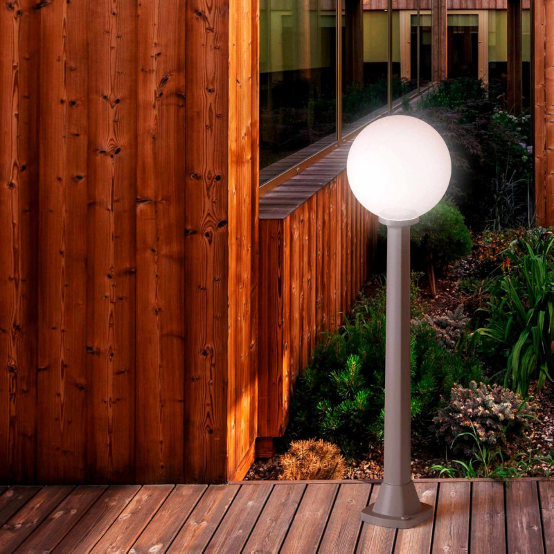 - Zeitloses Design: Klassischer Kugeldiffusor, der durch einen eleganten Fuß ergänzt wird, der seine Präsenz im Freien verstärkt.