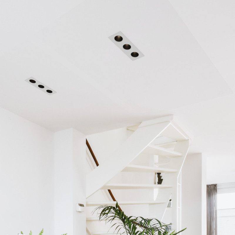 Aro downlight cuadrado basculante triple GU10 / MR16 - Bajo UGR - Corte 75 x 235mm