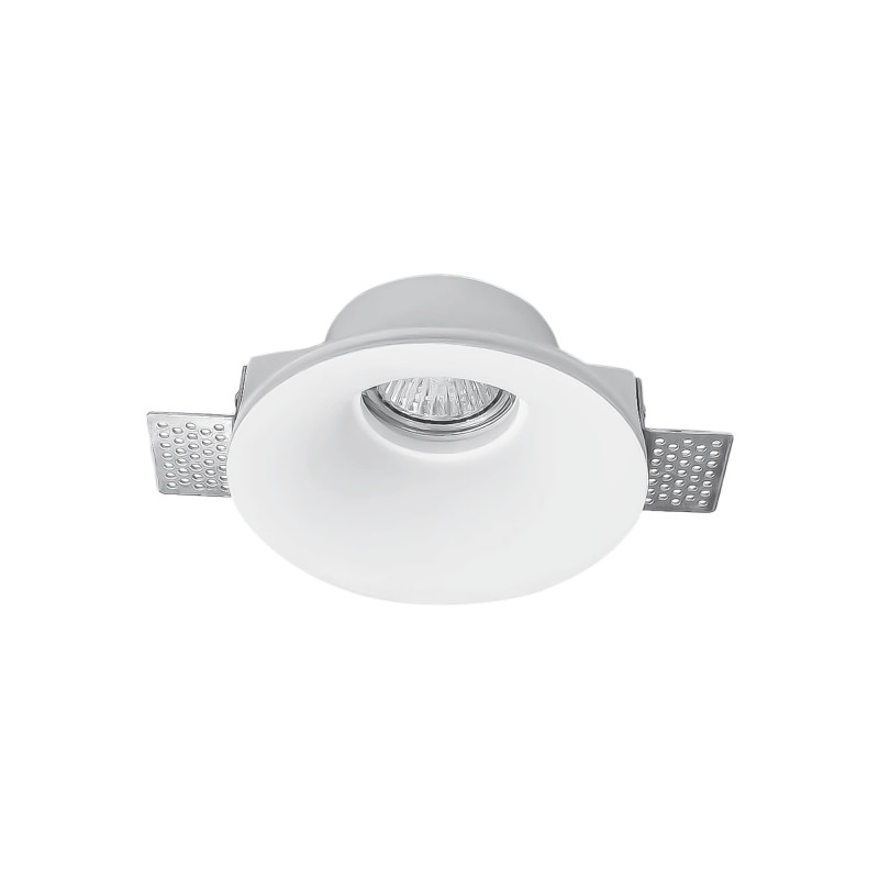 Foco redondo empotrable, de acabado trimless y fabricado en escayola blanca. Pensado para una integración total en techos de escayola o pladur, sin marcos ni sobresalientes visibles.