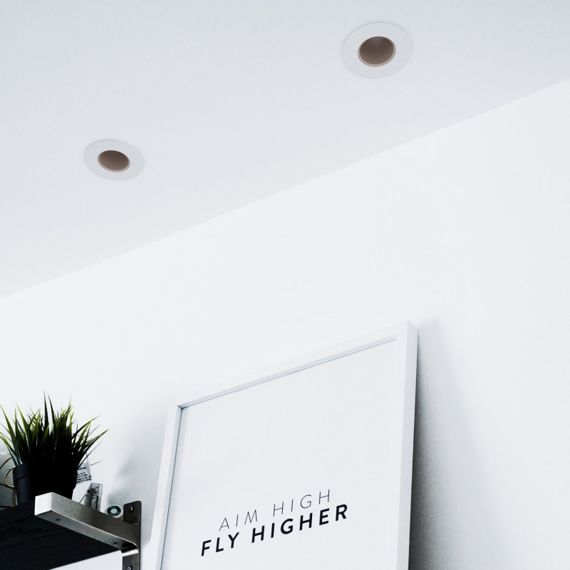 KIT Aro empotrable Ø90mm (blanco/champagne) + Bombilla GU10 5,4W + Portalámparas