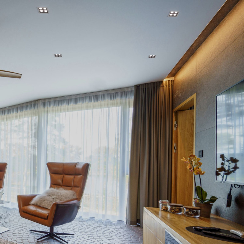 Cuenta con un bajo índice de deslumbramiento (UGR<18), lo que le permite brindar un alto confort lumínico a los usuarios. Además, su CRI>90, lo convierte en una opción ideal para proyectos que requieran índices cromáticos elevados.
