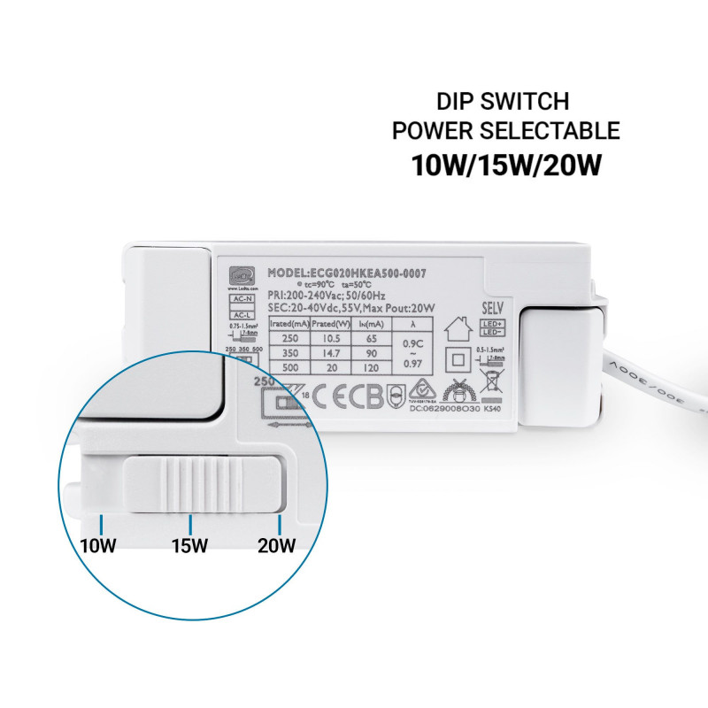 - Potencia ajustable: Con DIP Switch integrado, que permite seleccionar la potencia entre 10W, 15W y 20W, ajustándose perfectamente a cada entorno.
