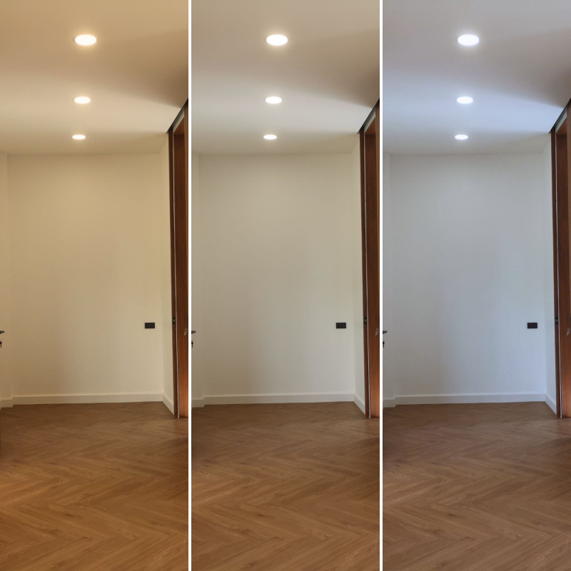- Ajuste de temperatura de color (CCT): Mediante un selector es posible elegir entre luz cálida (3000K), neutra (4000K) o fría (6000K) para adaptarse a distintas necesidades o estilos decorativos.