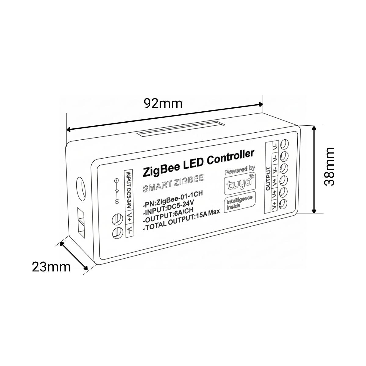 Controller for 5-24V single-color LED strips , compatible with Zigbee and TUYA SMART.