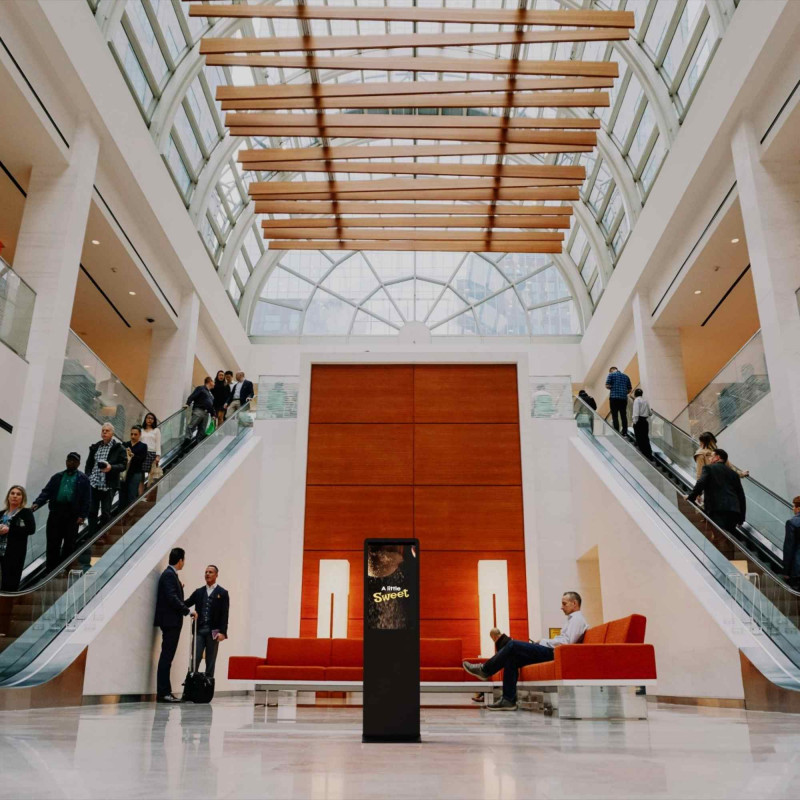 This totem is ideal for installation in shopping malls, stores, restaurants, meeting rooms or points of sale where there is a high traffic of people, thus maximizing its visibility and impact.