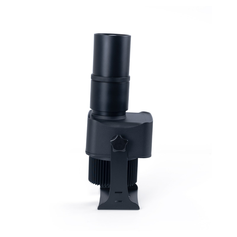 - 9° Optics: Equipped with 9° optics, this projector concentrates the light beam, providing a more intense and defined projection at greater distances, ideal for highlighting logos and messages in large spaces. Other optics options are available (see related products).