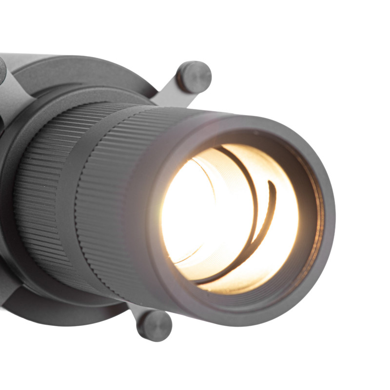 It allows shaping the projected light, allowing precise control over the direction and dispersion of the light. Helps bring out fine details and accentuate the contours of paintings and artwork with exceptional sharpness.