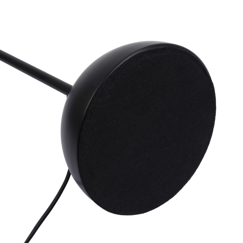 It has a sturdy, counterweighted, and protected base to prevent tipping and damage to surfaces.