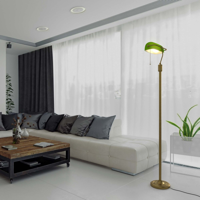 A true icon of vintage design, the BANQUERO floor lamp became popular in the early 20th century, especially in bank offices, thanks to its elegant design and distinctive green shade.