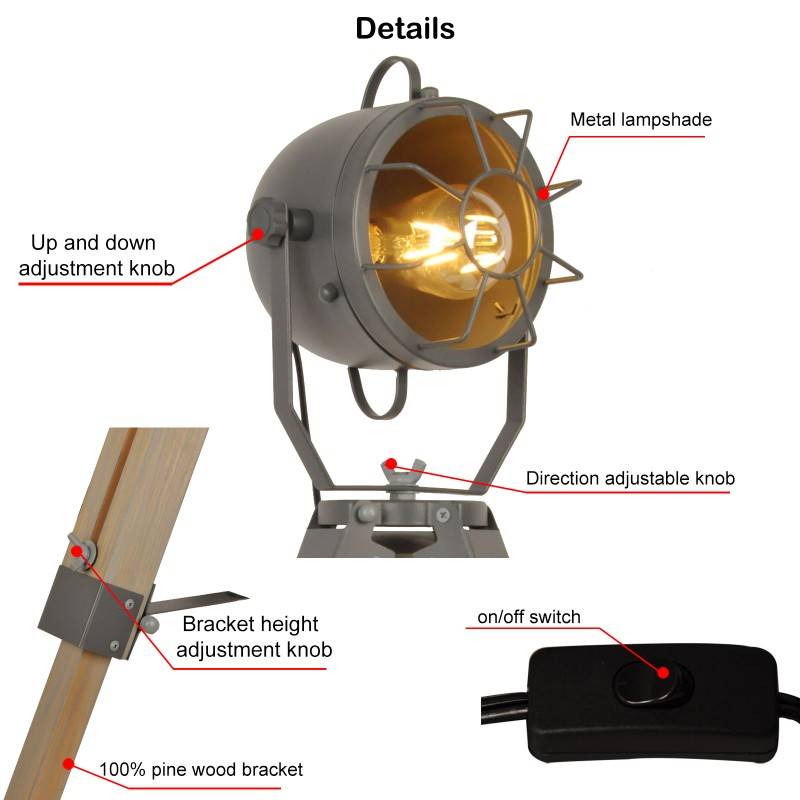 The Tachicom lamp is an ideal decorative piece to create environments with personality. Its vintage design combines a metal head with an extendable wooden tripod, offering a versatile and elegant retro aesthetic.