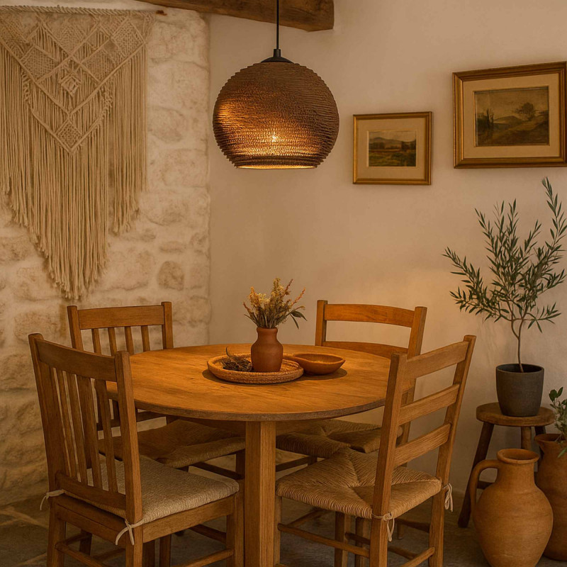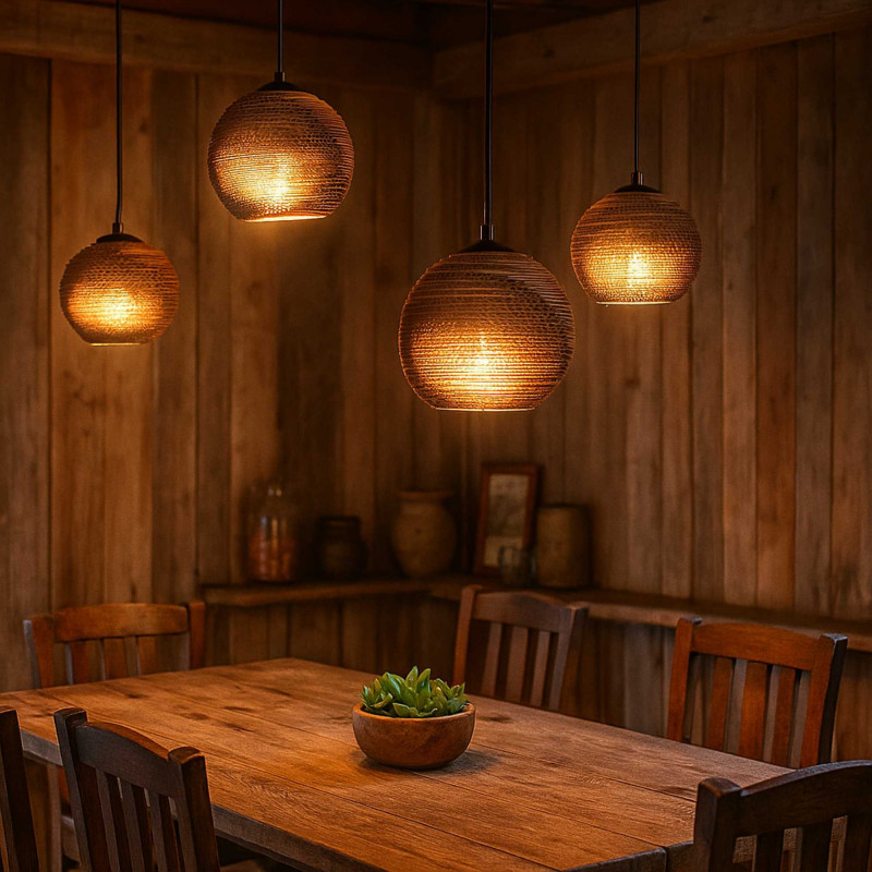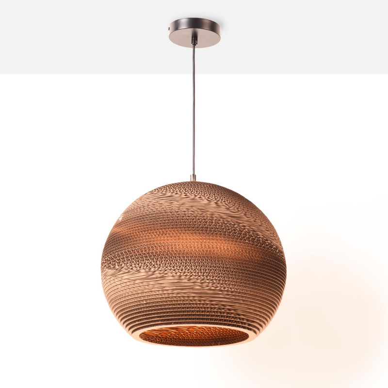 - Ecological material: Shade made of corrugated cardboard, a sustainable and recyclable material that provides lightness and durability.