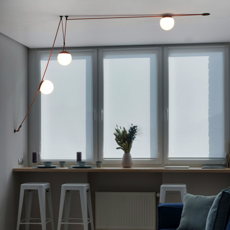 - Complete KIT: Includes three opal polycarbonate ball lamps with minimalist design + 12-meter conductive textile strap in brick color + installation accessories.