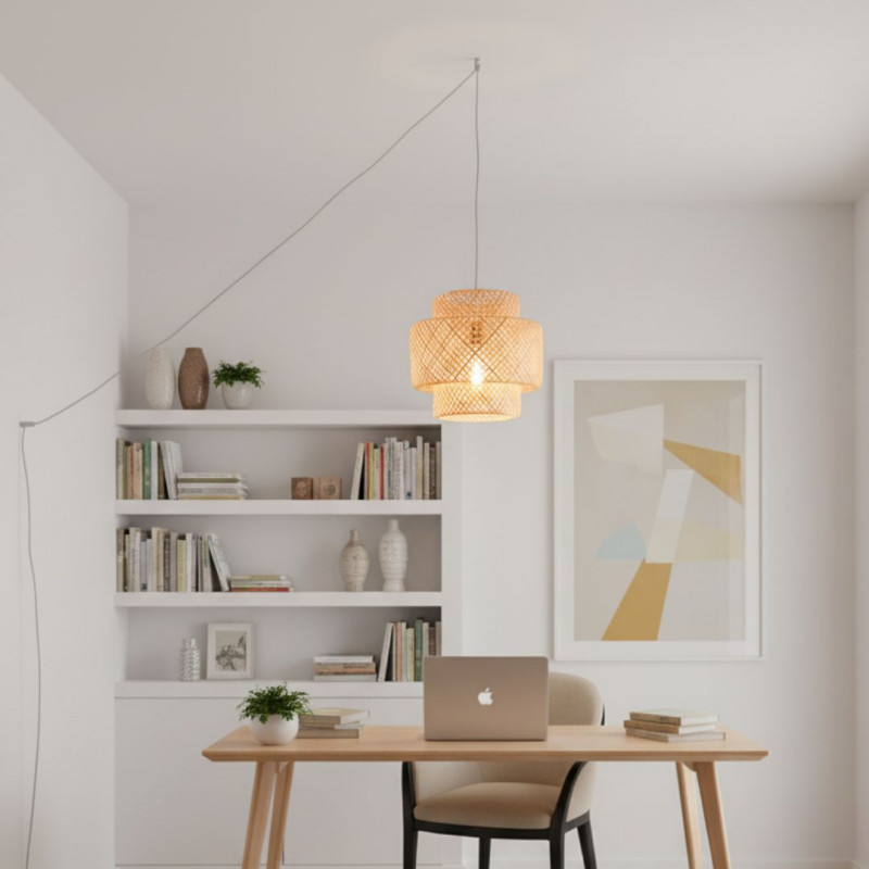 This lamp made of natural fibers brings a personal and distinctive stamp, connects us with the environment and constitutes an ecological option. Ø40cm diameter lampshade.