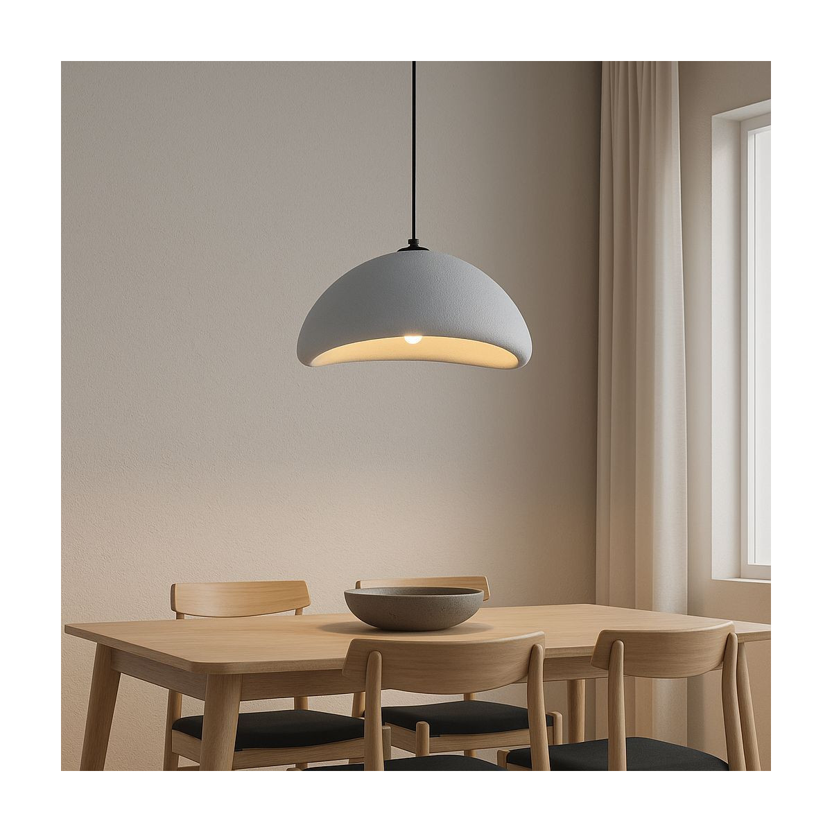 Suspended lamp made of resin with textured finish. Its handcrafted design and neutral tones bring calm and visual harmony to any environment.