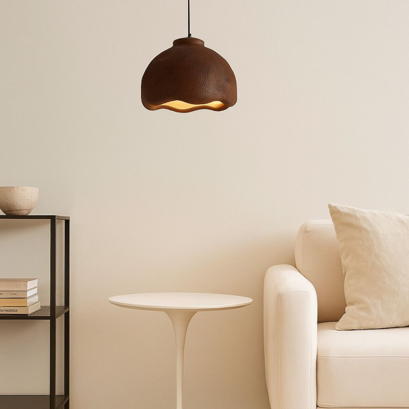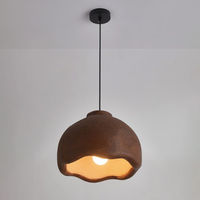 Pendant lamp made of resin with a rough finish and wavy edges. Its handcrafted design and neutral tones bring calm and visual harmony to any environment.