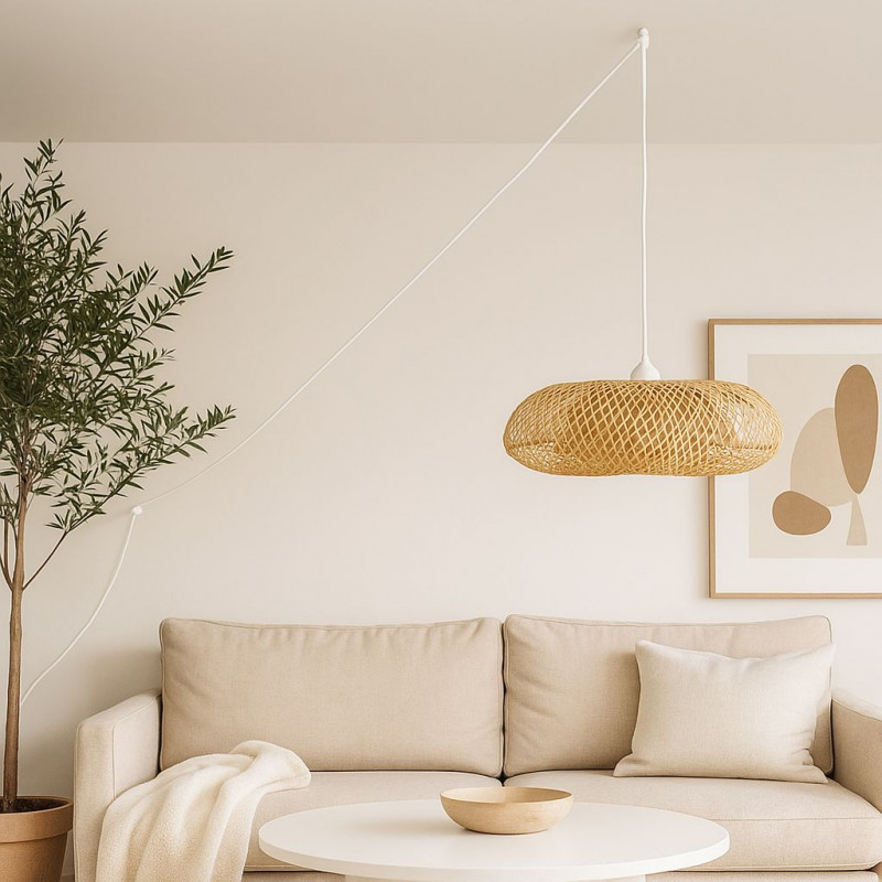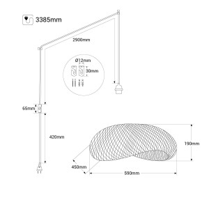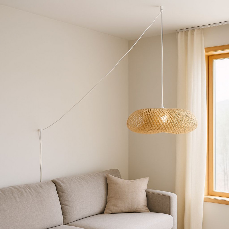 - Flexible installation: Includes adjustable cable with two decentralizing hooks for different configurations. Incorporates switch and Schuko plug, ideal for spaces without a light point nearby. Available in black, white and natural rope.