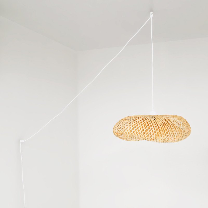Rattan hanging lamp "FREY" - With switch and plug - E27